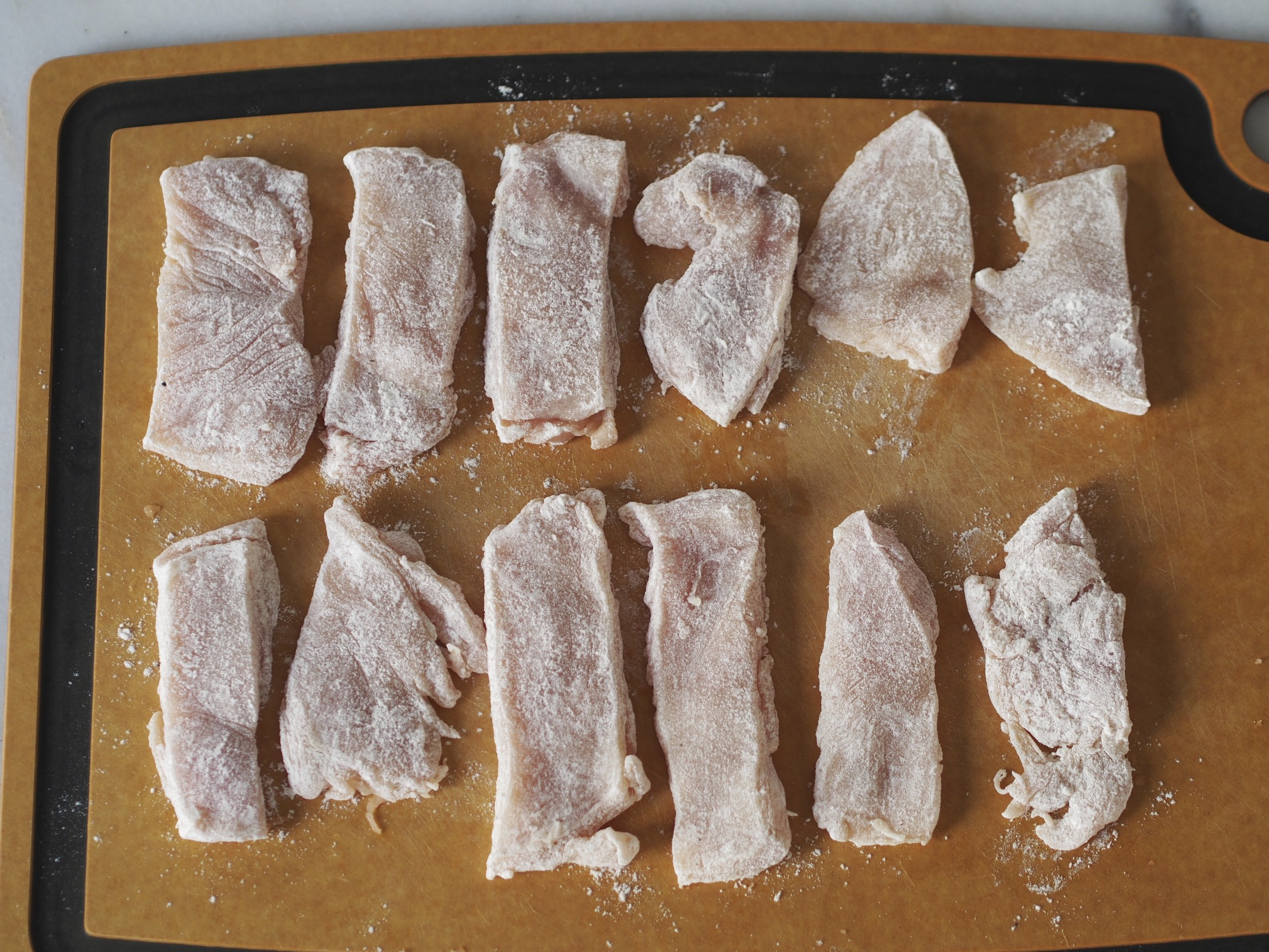 Lightly floured chicken for Chicken Marsala